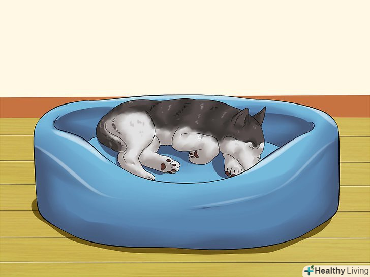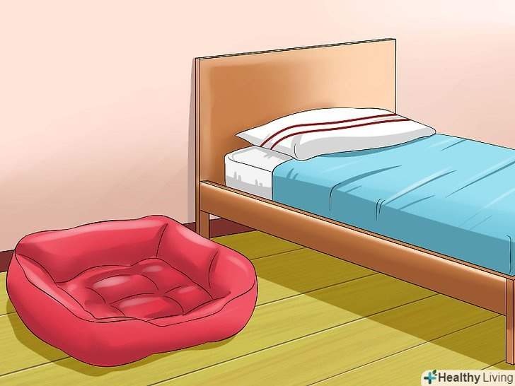 Облаштуйте спальне місце цуценя поруч зі своєю постіллю. якщо ви тільки що привезли цуценя додому, дуже важливо створити для нього почуття безпеки в новій обстановці. Ймовірно, він вперше виявився розлучений зі своїми побратимами і матір'ю, тому у нього може виникнути стан сепараційної тривоги (тривоги розставання). [6] щоб полегшити його переживання, необхідно облаштувати спальне місце для цуценя неподалік від або безпосередньо у вашій спальні. [7]- Розташуйте підстилку, клітку або ковдру цуценя на підлозі поруч з вашою постіллю. [8]