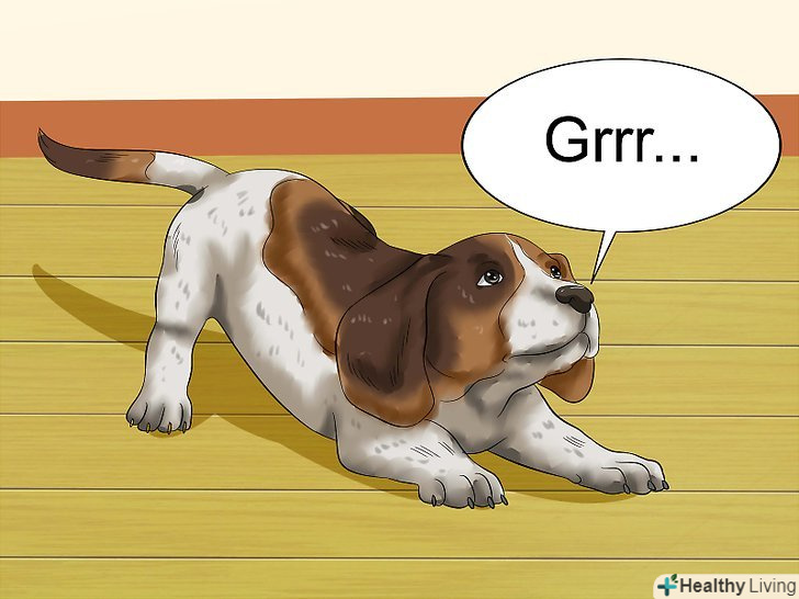 Прислухайтеся до цуценяти. розуміння мови тіла вихованця допоможе вам краще спілкуватися з ним і любити його ще сильніше. Інтерпретація звукових сигналів собаки є однією зі складових вивчення мови її тіла. Скуління і виття можуть говорити про сепараційної тривозі, особливо в перші дні цуценя у вашому домі. [44]- Щеня може починати бурчати під час таких змагальних ігор, як боротьба або перетягування каната. Глибинний гортанний Рик часто є ознакою грайливого настрою у цуценят.