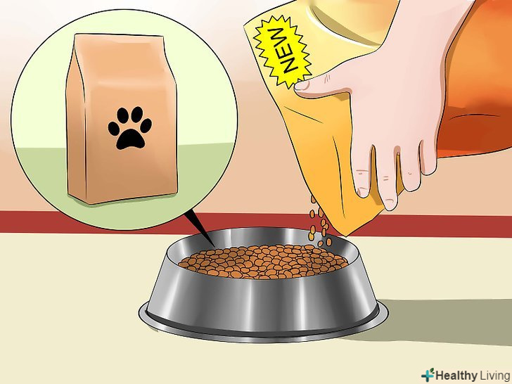 Переводите цуценя на новий вид корму поступово. важко буде запалити любов'ю до цуценяти, якщо у нього розвинеться діарея відразу після прибуття до вас додому. Щоб цього уникнути, спочатку годуєте цуценя тим же кормом, до якого він звик на момент його придбання. Через кілька днів почніть поступово (протягом 7-10 днів) переводити цуценя на новий корм. [62]- У перші кілька днів процентні частки нового і старого корму повинні становити 25% і 75%. Поступово доведіть це співвідношення до 50%/50%, 75%/25% і, нарешті, до 100% нового корму, витримуючи кожну чергову зміну протягом декількох днів. [63]