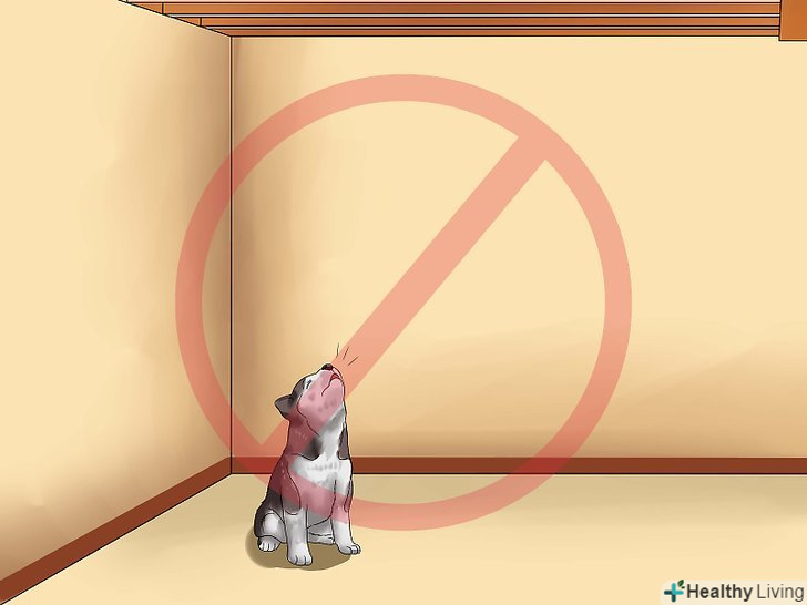 Не замикайте цуценя в підвалі або гаражі. Сепараційна тривога може змусити цуценя вити, скиглити або гавкати. [14] можливо, вам захочеться замкнути цуценя в підвалі або гаражі, де його виття буде приглушений або зовсім не чути, щоб забезпечити собі спокійний сон. Але це погана ідея. Так ви тільки підсилите тривожність вихованця і його прагнення вити. [15]- Ізоляція в підвалі або гаражі також може призвести до розвитку поведінкових проблем у собаки, коли вона підросте. [16]