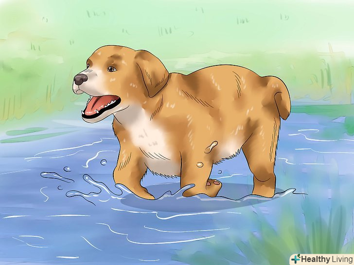 Дозвольте цуценяті грати з водою. якщо ваш щеня любить воду, то водні ігри є відмінним способом демонстрації любові до нього. Активність у воді дає вихованцеві щадне навантаження [30] і не робить надмірного впливу на його суглоби.- Ймовірно при першому стрибку у воду щеня буде плавати невпевнено. Тому з метою безпеки можна спочатку наряджати вихованця в спеціальний рятувальний жилет для собак, поки він не навчиться добре плавати. [31] рятувальні жилети для собак можна пошукати в місцевих зоомагазинах, але зазвичай їх простіше придбати через Інтернет.