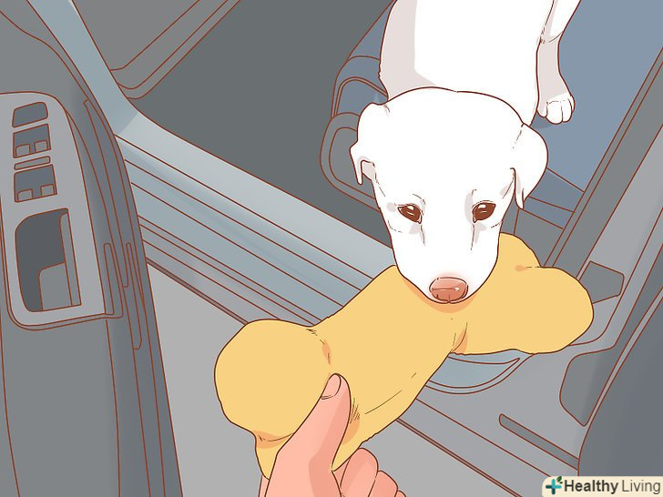 Розкладіть кілька іграшок біля собаки, щоб їй було чим зайнятися. краще не давати вашому вихованцеві кістки або частування, щоб його не знудило в дорозі.- Не беріть іграшки-пищалки, так як вони будуть зводити вас з розуму.