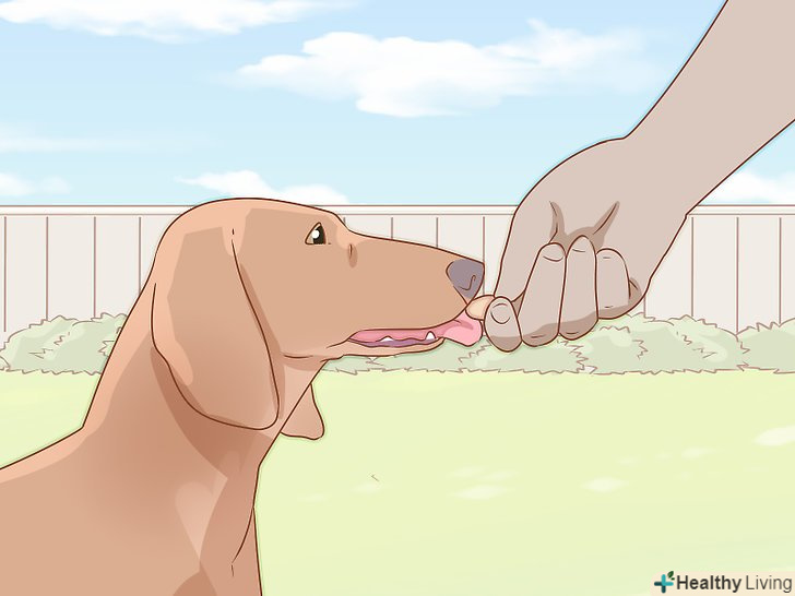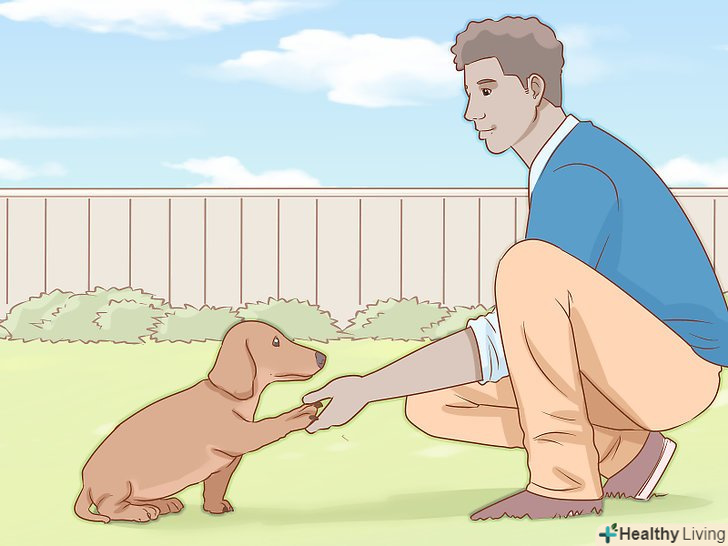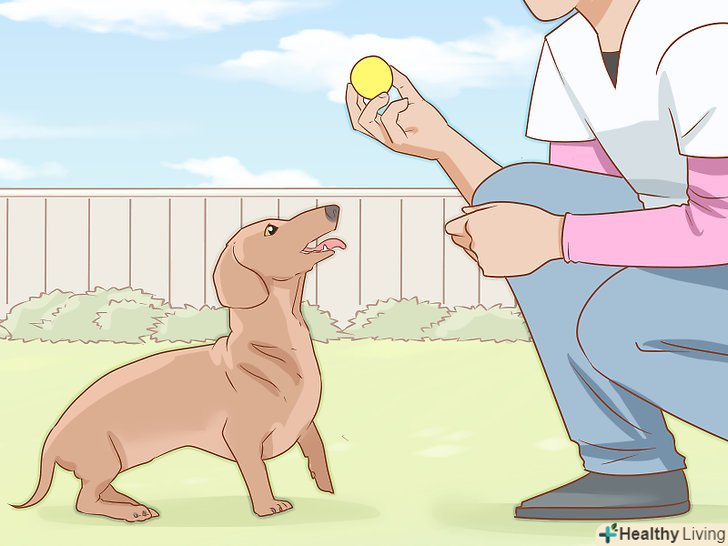 Заохочуйте правильну поведінку. якщо ви хочете змусити таксу робити те, що вам потрібно, вам необхідно негайно заохочувати правильне її поведінку. Наприклад, якщо ви просите таксу сісти, і вона підкоряється, відразу ж похваліть і погладьте її, щоб вона знала, що зробила щось правильно. Вам слід завжди заохочувати таксу, якщо вона правильно поводиться, щоб вона розуміла, що саме цього ви від неї хочете. [8]