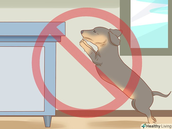 Не дозволяйте таксе застрибувати на м'які меблі та інші високі предмети. стрибки також надають істотне навантаження на спину такси, що підвищує ризик дископатії. Щоб уникнути даного ризику, не дозволяйте собаці встрибувати на високі предмети меблів, наприклад, на диван або ваше ліжко. Якщо ви хочете взяти таксу до себе на коліна, просто підніміть її самостійно. Не заохочуйте стрибки.- Подумайте про облаштування пандусів для меблів, якщо ви хочете надати собаці можливість забиратися на предмети меблів, коли вас немає поруч. [5]