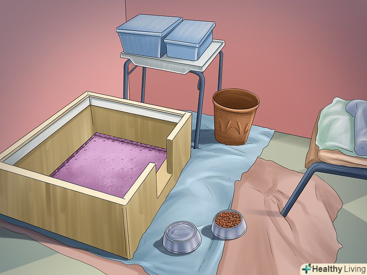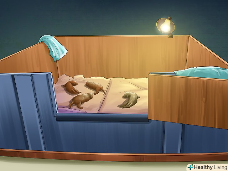 Забезпечте комфортно теплу температуру в гнізді. новонароджені цуценята не в змозі самостійно регулювати температуру тіла, тому їх слід утримувати в теплі. У перші кілька днів підтримуйте в одній із зон гнізда температуру близько 29,5 °C. Потім можна буде опустити її до 24-26,5 градусів.- Забезпечити підігрів можна за допомогою встановленої в одному з кутів гніздового ящика лампи розжарювання. Якщо цуценятам холодно, вони не будуть зайвий раз рухатися. Обов'язково перевіряйте, щоб в гніздовому ящику було тепло і цуценята трималися близько до матері і один до одного.