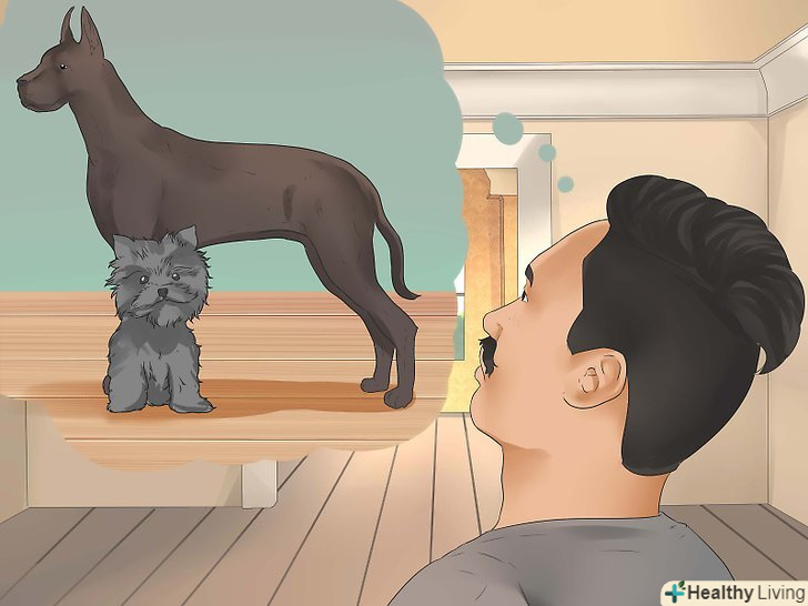 Визначтеся з розміром вихованця. яку собаку ви хочете завести: велику чи маленьку? Відповідь на це питання в деякій мірі буде спиратися на оцінку житлового простору вашого будинку і вуличного простору для вигулу собаки.- Наприклад, великі собаки, такі як датські доги та сенбернари, спокійні та охайні, а дрібні породи, такі як джек рассел тер'єр, більш енергійні та мають менші розміри. Як би там не було, і у великих, і у дрібних собак є свої шанувальники. Найчастіше судження про те, яка ж собака буде краще себе вести в конкретних умовах, буде залежати від вашого особистої думки і особливостей конкретної тварини. [6]