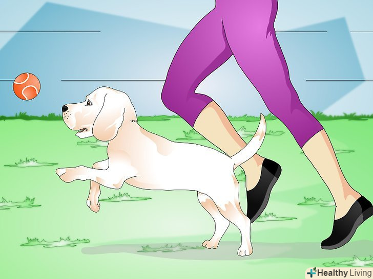 - Якщо собака не приносить м'ячик, який ви кидаєте, знайдіть стіну і грайте, кидаючи м'ячик об стіну. Грайте хвилин 15-20, щоб собака втомилася бігати за м'ячем.