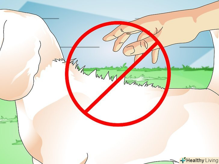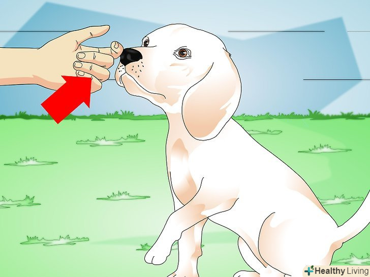 Дайте собаці нюхати вашу руку. якщо собака бачить вас в перший раз, повільно підійдіть до неї і піднесіть руку до її носа. Не нахиляйтеся над собакою-це може її налякати. [2]- Відійдіть, якщо собака гарчить, гавкає або напружена.