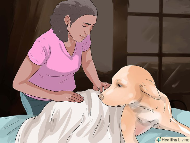 - Якщо Собаці дуже боляче, або вона скиглить, спокійно поговоріть з нею. Поступово грілка зігріє суглоби, і Собаці стане легше. [14]