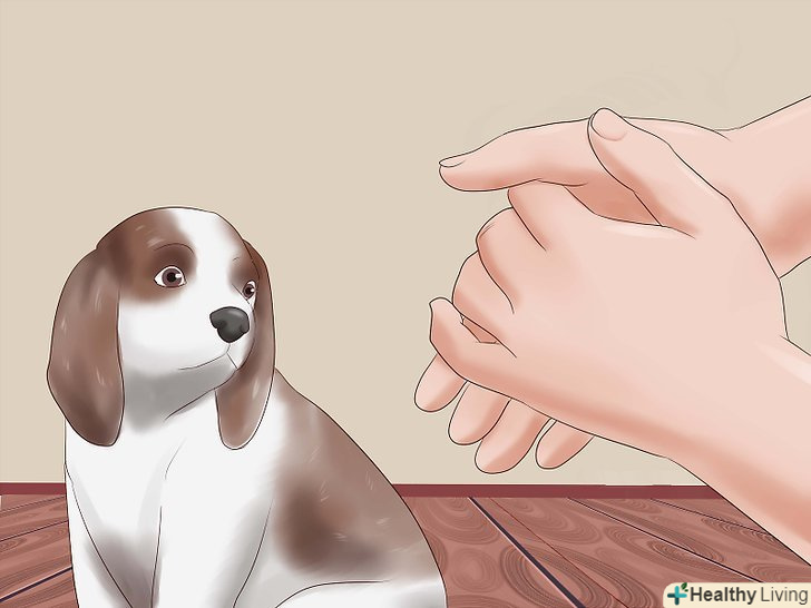 - Присядьте на підлогу або навпочіпки і покличте цуценя до себе. Клацніть пальцями або постукайте по підлозі, щоб привернути увагу цуценя. Якщо він швидко підійде до вас, то він досить прив'язаний до людей.