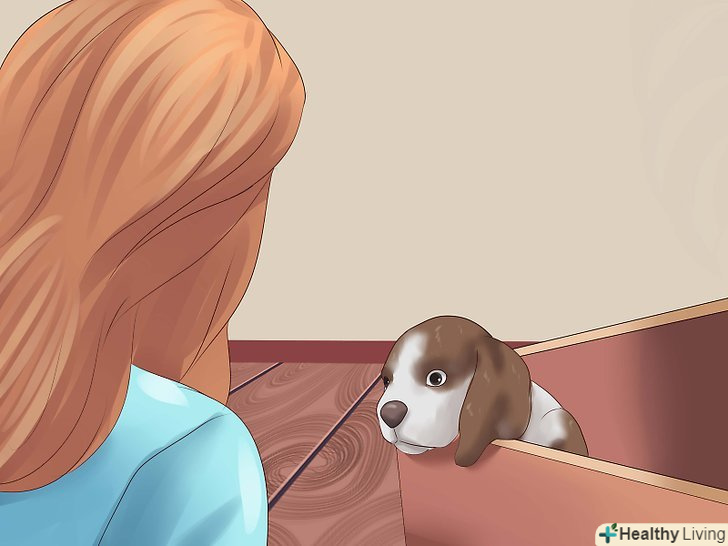 Проведіть перевірку слуху та зору. коли список вподобаних вам цуценят скоротиться до одного або двох тварин, проведіть перевірку слуху і зору, щоб переконатися в тому, що цуценята добре чують і бачать. [10]- Для проведення перевірки слуху хлопніть в долоні за головою цуценя, щоб викликати у нього реакцію на шум. Також можна тупнути ногою за спиною цуценя або впустити поруч з ним зв'язку ключів. Пам'ятайте про те, що виявити глухоту у цуценя досить важко в загоні з іншими цуценятами. Тому постарайтеся проводити дану перевірку тоді, коли щеня буде перебувати один далеко від своїх побратимів.
