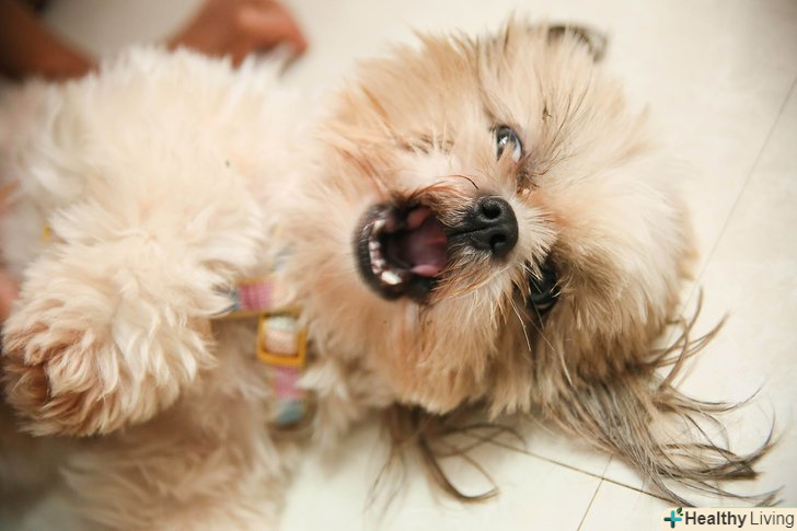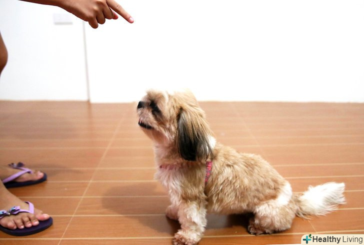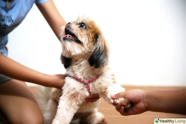 Навчіть собаку трюкам. як тільки щеня освоїть базові команди, навчіть його декільком новим трюкам, наприклад, перекиду або команді «помри» . Витрачайте на кожен урок дресирування приблизно по 10 хвилин і обов'язково пропонуйте цуценяті частування за правильно виконувані дії ще до того, як ви дасте їм назву у вигляді команди. [11] наприклад, покажіть цуценяті, що він повинен зробити (можливо, ви побажаєте, щоб він дав вам лапу) і заохочуйте його тоді, коли він правильно виконає цю дію кілька разів поспіль. Потім можна буде ввести конкретну голосову команду (в даному вище прикладі це буде команда «дай лапу»).- Виконання трюків змушує собаку думати, вчить її концентрувати свою увагу і зміцнює взаємини з господарем. Не перевтомлюйте цуценя вивченням будь-якого трюку, просто регулярно займайтеся з ним і закінчуйте уроки на позитивній ноті.