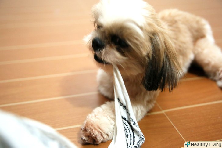 Пограйте в перетягування каната. використовуйте спеціально призначену для цих цілей іграшку у вигляді відрізка каната, а не який-небудь Підручний предмет на зразок черевика. Якщо ви будете користуватися тим, що не призначене для ігор, щеня може заплутатися і вирішити, що йому можна грати з будь-якими предметами. Коли тягнете іграшку на себе, робіть це акуратно, так як існує ризик пошкодити цуценяті зуби, якщо різко смикнути за канат. Якщо цуценяті менше року, грайте особливо обережно. У верхній частині черепа молодих собак присутні м'які зони, які можна легко травмувати.- Деякі вважають, що гра в перетягування каната робить собаку жадібною. З цієї причини дана гра може не підійти для великих собак охоронних порід. Їх виражена фізична сила і охоронний інстинкт можуть привести до розвитку домінантної поведінки. [6]