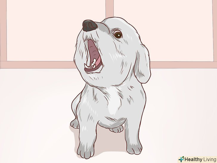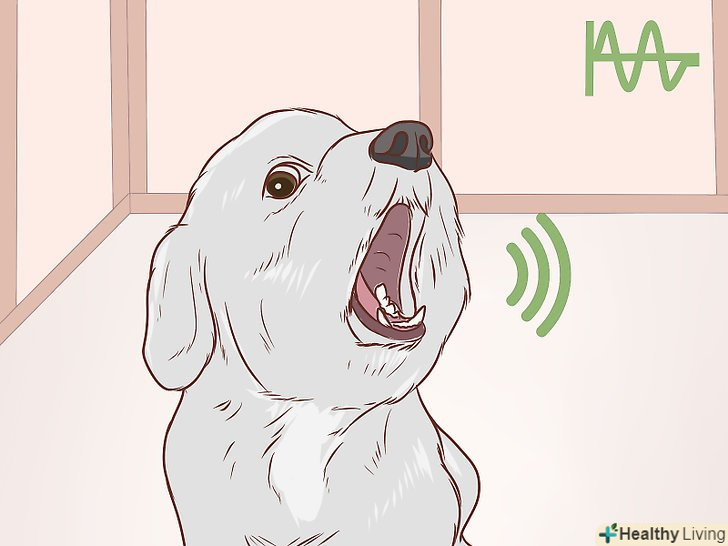 Розберіться, чому собаки скиглять. якщо ви будете розуміти, з якої причини собака скиглить, вам буде простіше реагувати на її прохання. Є кілька типів таких звуків, кожен з яких позначає різні речі.- Довгий і тривалий скулеж говорить про те, що собака нудьгує, і їй самотньо. Якщо ваш цуценя або доросла собака нещодавно забрали від інших собак, спочатку вона може скиглити. Якщо ви будете більше часу проводити поруч з вихованцем, йому буде не так самотньо.