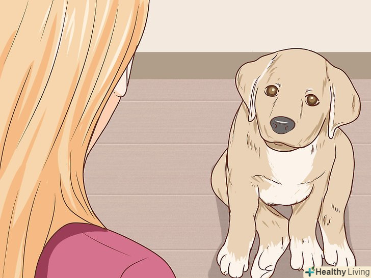 Знайте, як ваша собака реагує на ваш погляд. Подумайте, як ви відчуваєте себе, коли хтось не просто дивиться на вас, а впивається в вас поглядом. Це не подобається не тільки вам, але і собакам, оскільки вони сприймають такий погляд як загрозу. Якщо собака відвернеться, це означає, що вона не хоче конфлікту. Якщо ви навчите собаку дивитися вам в очі, це буде дуже корисно в дресируванні. [1]- Найефективніший спосіб дресирування собак називається посиленням позитивної мотивації. Ефективність цього способу доведена вченими, ветеринарами і фахівцями з поведінки собак. Карати собак не рекомендується, оскільки собаки швидко все забувають, і вони навряд чи запам'ятають, що калюжа на підлозі якось пов'язана з вашим невдоволенням. Насправді, собаки не відчувають провини. Якщо собака виглядає винною, її господар вже не так злиться, і собака вміє отримувати користь з винного виду. Собака бачить, що вам не подобаються калюжі на підлозі, тому вона намагається вести себе так, немов відчуває провину, щоб пом'якшити вашу реакцію. Насправді, собаки не розуміють, що калюжа на підлозі виводить вас з себе.