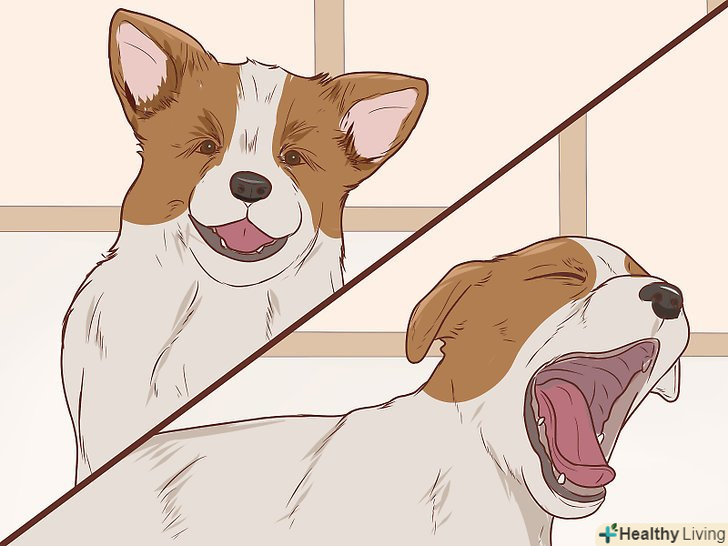 - Позіхання. Позіхання залежить від контексту ,як і у людей (люди позіхають через втому, брак кисню, стресу або незручності або якщо поруч хтось позіхає). У собак позіхання точно так же заразно, як і в світі людей. [28] якщо ви позіхаєте перед собакою, вона може вирішити, що ви нервуєте (в цьому випадку собака може відвернутися, щоб залишити вам особистий простір), або позіхне у відповідь. [29] Собаки також позіхають, щоб позбутися від напруги, висловити нерозуміння, а також якщо відчувають загрозу, особливо в нових ситуаціях і при знайомстві з іншими собаками та іншими тваринами.