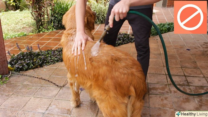 - Пам'ятайте: лити воду на голову і морду не можна. Якщо ви поливаєте собаку з відра або ковша, лийте воду так, щоб вона текла по спині. Якщо ви змиваєте шампунь лійкою душу або пульверизатором, не направляйте воду в морду. [22]