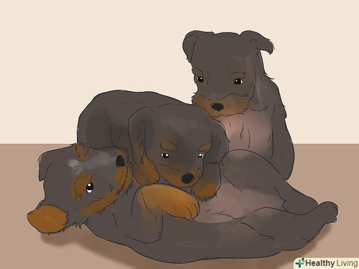 Оцініть здоров'я кожного цуценя. попросіть селекціонера провести деякий час з кожним цуценям окремо. Для прийняття правильного рішення Ви повинні переконатися в здоров'ї цуценя і поспостерігати за його поведінкою під час того, коли поруч немає його братів і сестер.- Перевірте шерсть, очі, задній прохід і вуха цуценя. У здорового цуценя йоркширського тер'єра повинні бути ясні очі, чистий ніс, блискуча шерсть і чисті вуха. У хворого цуценя може бути сплутана шерсть, кашель, роздутий живіт і брудні вуха.