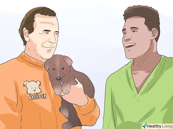 Відвідайте всіх заводчиків, які, на ваш погляд, вам підходять. Заводчик може говорити що завгодно по телефону, однак ви повинні побачити все своїми очима і переконатися в його порядності. Хороший заводчик привчить цуценят до спілкування, щоб вони були доброзичливі до людей. Хоча деякі цуценята можуть бути більш сором'язливими, всі вони повинні відчувати себе комфортно серед людей. Попросіть подивитися всіх цуценят і їх мати, щоб переконатися, що вся сім'я дуже дружна і що цуценят не відлучили від материнського молока занадто рано.- Переконайтеся, що щенята знаходяться в чистоті і що у кожної собаки є своє місце і миска з їжею і водою.