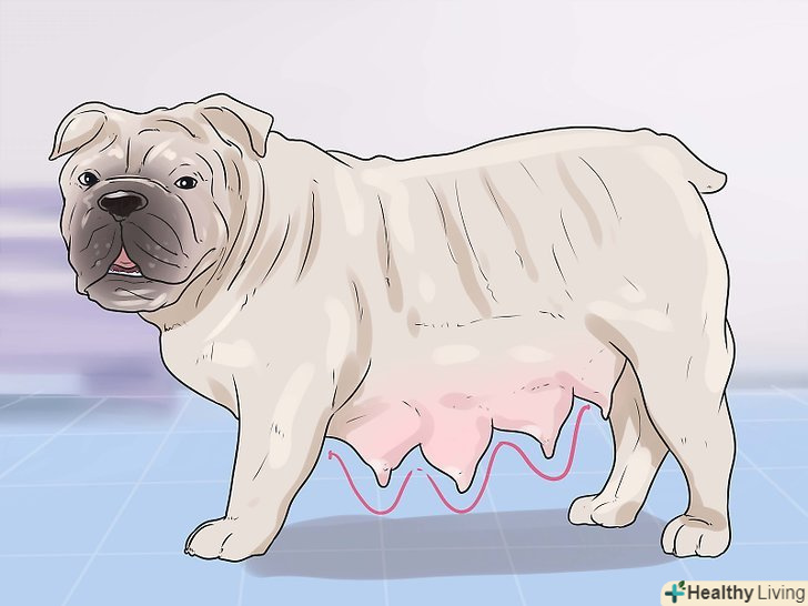 Знайте, що під час вагітності змінюється вид сосків і молочних залоз. ближче до кінця вагітності молочні залози наповнюються молоком. В останні три тижні собаці потрібно давати більше корму. Обговоріть харчування з ветеринаром.- Як правило, вагітним собакам в останні три тижні вагітності дають корм для цуценят. Він більш поживний і забезпечує собаку і цуценят усіма потрібними речовинами. Такий корм також допомагає собаці підготуватися до лактації.