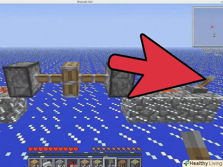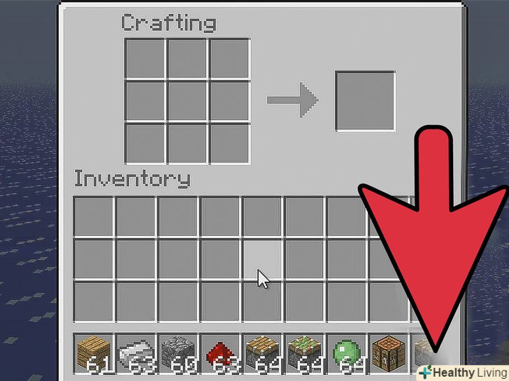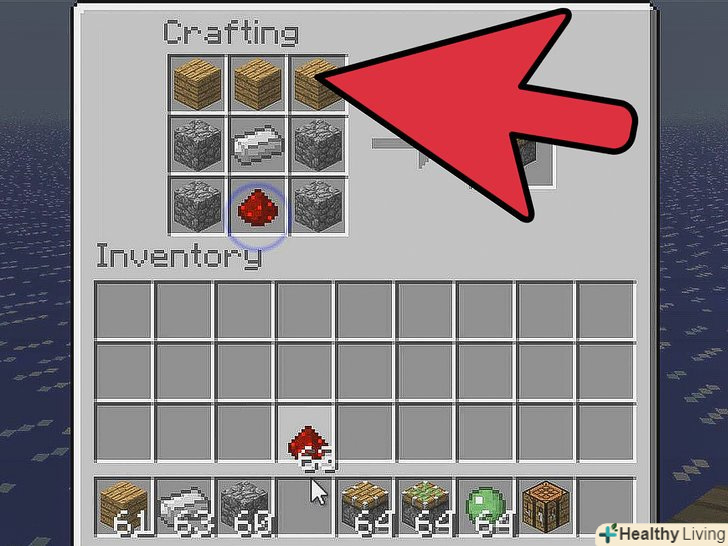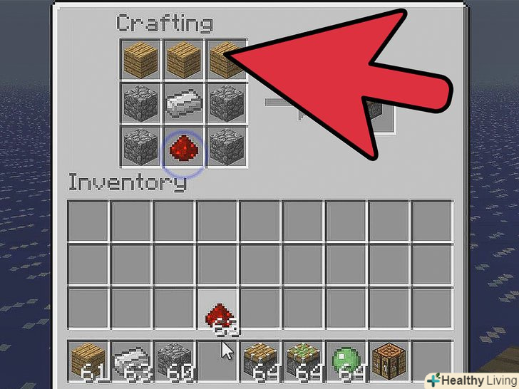 Помістіть всі матеріали в сітку крафта згідно зі схемою створення поршня (див.- Покладіть три дошки у верхні три слоти сітки.