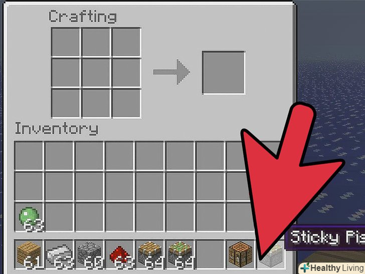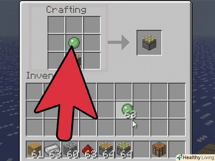 Покладіть поршень і слаймбол в сітку крафта наступним чином:- Покладіть слаймбол в середній слот.