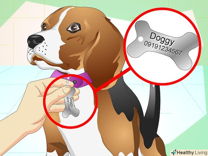 Забезпечте собаці безпеку. постарайтеся зробити так, що в разі втрати тварина зможуть ідентифікувати і повернути вам. Помістіть на нашийник жетон з необхідною інформацією про вас і про саму собаку. Можна також звернутися до ветеринара з тим, щоб він вживив вашому вихованцеві мікрочіп. [15]