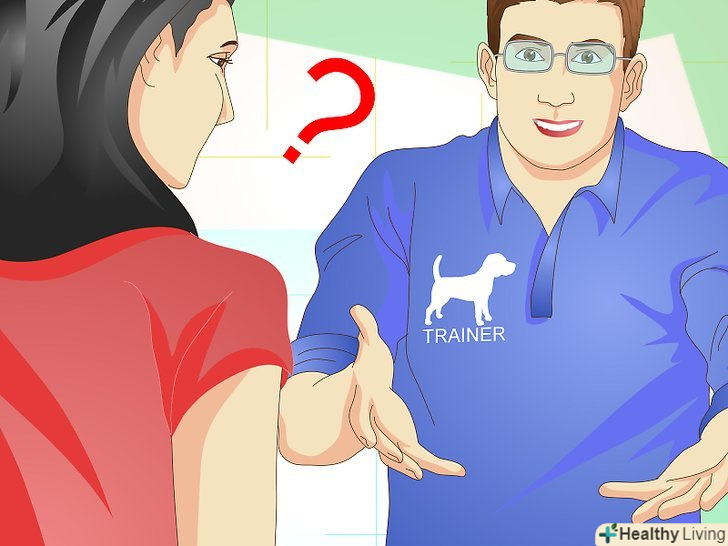 Порадьтеся з ким-небудь. Собаки та їхні господарі можуть отримати багато користі від спілкування з професійним тренером собак. Тренер навчить вас краще розуміти один одного і бути однією командою. Тренування допоможуть також Вашому вихованцеві придбати важливі соціальні навички. Розпитайте знайомих господарів собак, чи немає у них на прикметі хорошого тренера. [18]