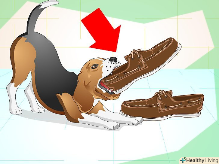 Зрозумійте причини деструктивної поведінки. більшість власників собак знайомі з неприємною ситуацією, коли, прийшовши додому, вони застають безлад і розгром, які вчинив їх вихованець. Собака може погризти ваші улюблені туфлі або зіпсувати диван. Першою реакцією на деструктивну поведінку є гнів. Однак постарайтеся стриматися і подумайте, чому ваш вихованець поводився подібним чином.- Коли собака псує що-небудь, вона, як правило, намагається донести до вас дві речі. По-перше, тварині потрібно більше предметів, які належали б йому. Придбайте більше іграшок для свого вихованця. І по-друге, собаці потрібно більше активності та уваги з Вашого боку. [3]