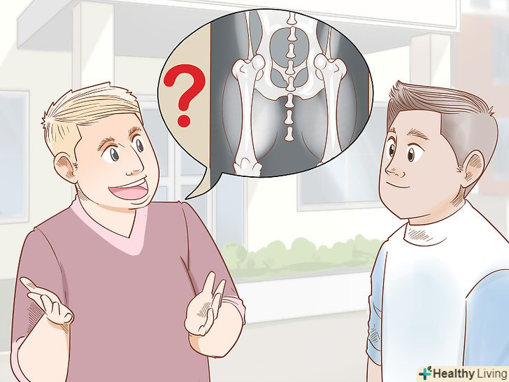 Запитайте, чи проходили батьки обстеження на наявність дисплазії суглобів. ці порушення передаються у спадок, і їх можна побачити на знімку до появи симптомів. У обох батьків не повинно бути дисплазії. [20]