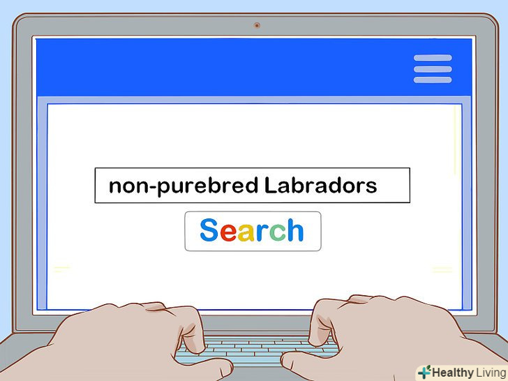 Вивчіть інформацію про нечистокровних лабрадорів. популярність набирають помісі лабрадорів з іншими породами. Лабрадори сріблястого забарвлення можуть бути результатом помісі лабрадора і Веймарської лягавою, [3] а лабрадудль — це помісь лабрадора і пуделя. [4] такі собаки можуть бути відмінними вихованцями, проте не варто вірити тому, що вони взяли найкраще від обох порід.- Замість того щоб платити гроші за особливу помісь, краще взяти цуценя, чий вигляд і темперамент вам підходить, з притулку. [5]