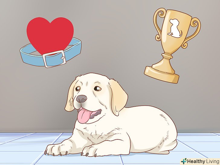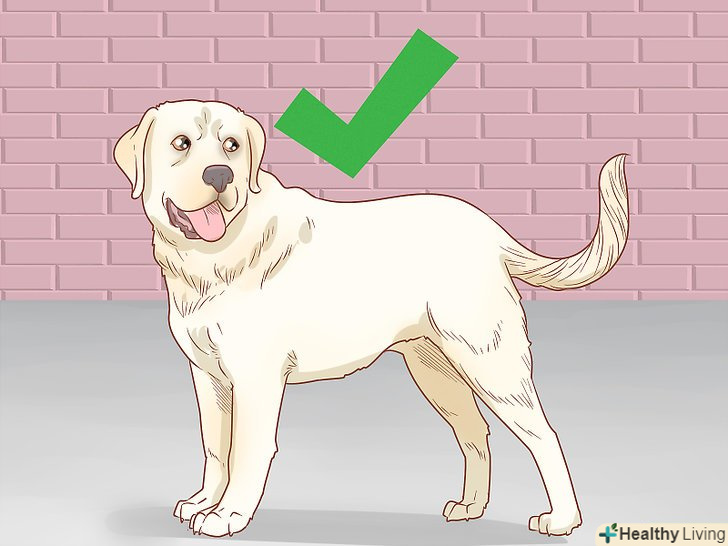 Якщо ви хочете собі собаку, яка буде брати участь у виставках, переконайтеся, що батьки відповідають вимогам породи. [18] наприклад, у обох собак повинен бути хвіст як у видри, товстий і конусоподібний, без пуху. Шерсть повинні бути густою, щільною і жорсткою. Забарвлення лабрадорів буває чорним, пісочним або шоколадним, проте ні за яких умов у собаки не повинно бути смужок або плям.- Попросіть показати родоводи та інші документи батьків. Це важливо, якщо ви маєте намір брати участь у виставках. [19]