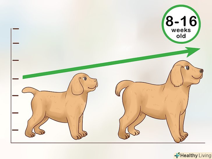 Стрибкоподібний ріст. у віці від восьми і шістнадцяти тижнів цуценята починають дуже різко рости і набирати вагу. У наступні місяці зростання триває більш плавно. [12]