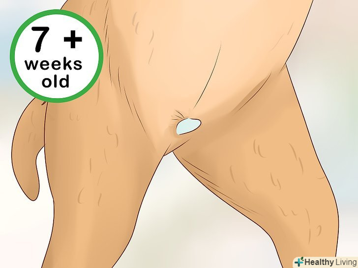 Вік кобеля можна визначить по статевих органах. у цуценят чоловічої статі яєчка опускаються в мошонку в перші сім тижнів після появи на світ. Це можна визначити візуально, так як яєчка стають набагато помітніше. [17]