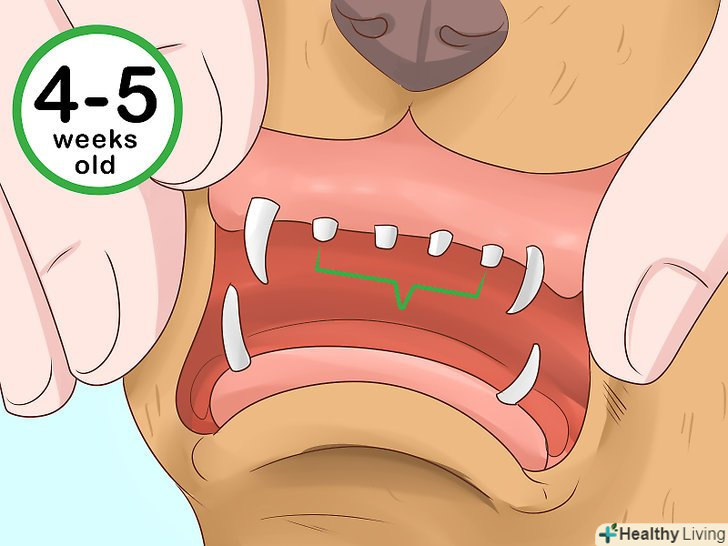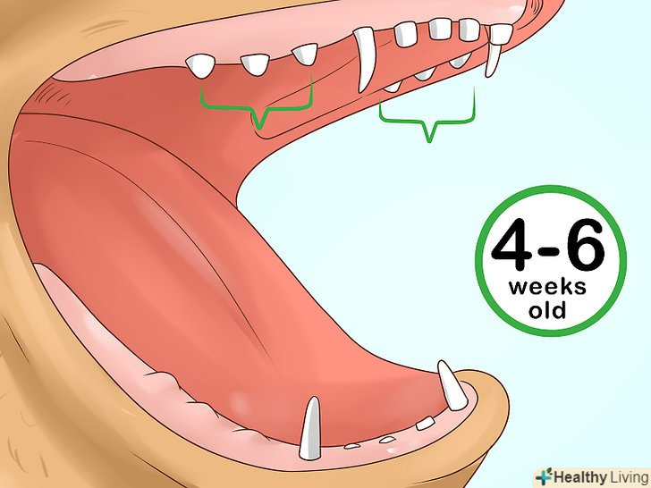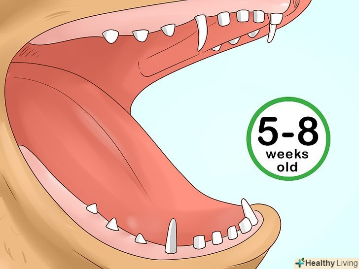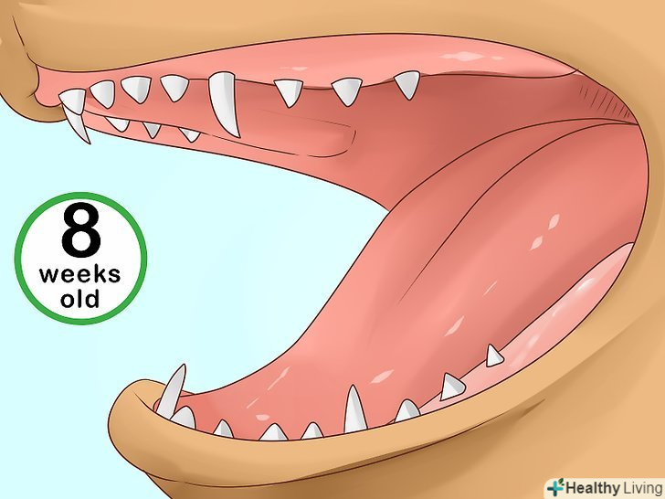 Чи всі молочні зуби прорізалися? до восьмого тижня у цуценя повинен бути повний набір молочних зубів. Вони дуже гострі. Між восьмим і шістнадцятим тижнем щеня росте дуже інтенсивно, його голова і щелепа сильно збільшуються в розмірах, тому між молочними зубами багато місця. Незабаром молочні зуби в роті у цуценя починають виглядати занадто маленькими. [6]