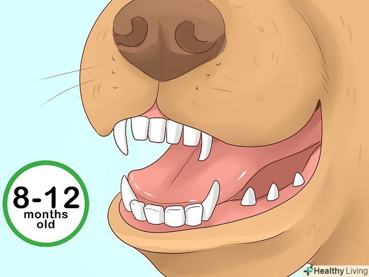 Чи почали прорізатися постійні зуби? між четвертим і восьмим місяцем життя молочні зуби у собаки змінюються постійними. Зміна зубів починається з різців, потім по черзі змінюються всі інші зуби. Чим старше щеня, тим менше у нього молочних зубів і тим більше постійних. [7]- Більшість молочних зубів випадає до п'ятимісячного віку. У віці від восьми місяців до року у собаки повинні з'явитися всі 42 постійних зуба.