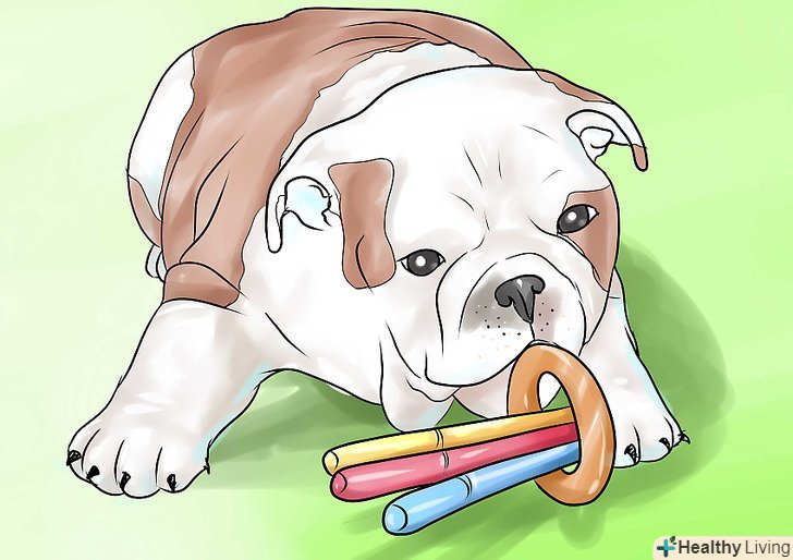 Знайте, що коли ви візьмете цуценя, у нього будуть різатися зуби. у цей час треба надати йому багато іграшок для жування. Рекомендуються коров'ячі копита, які можна знайти в багатьох зоомагазинах. Уникайте свинячих вух, дешевої сирої шкіри і продуктів "greenies", оскільки вони можуть застрягти в горлі, викликати важку діарею і непрохідність кишечника.