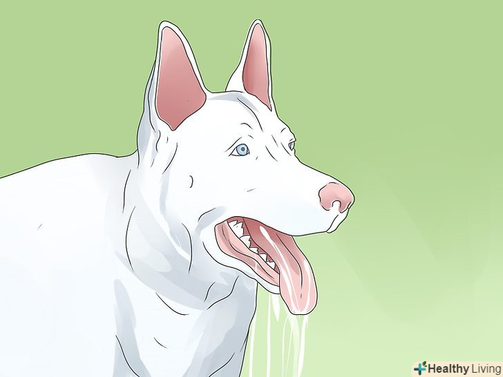 - рясне слиновиділення: Собака не в змозі ковтати, тому слина починає виділятися з пащі.
