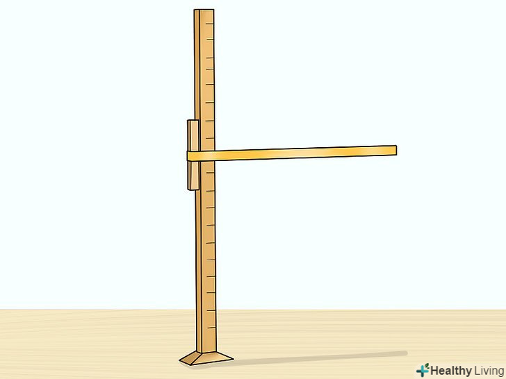 Використовуйте звичайний ростомір для собак. у зоомагазинах можна знайти спеціальні Ростоміри для собак з рухомою горизонтальною планкою для позначки зростання на вертикальній лінійці. Вони досить зручні для вимірювання росту вихованців, так як нижній кінець ростоміра впирається в підлогу, а рухома планка просто опускається на холку собаки.- При використанні такого ростоміра важливо стежити за тим, щоб його лінійка залишалася вертикальною. На щастя, у багатьох моделях ростомерів для собак передбачений вбудований рівень.