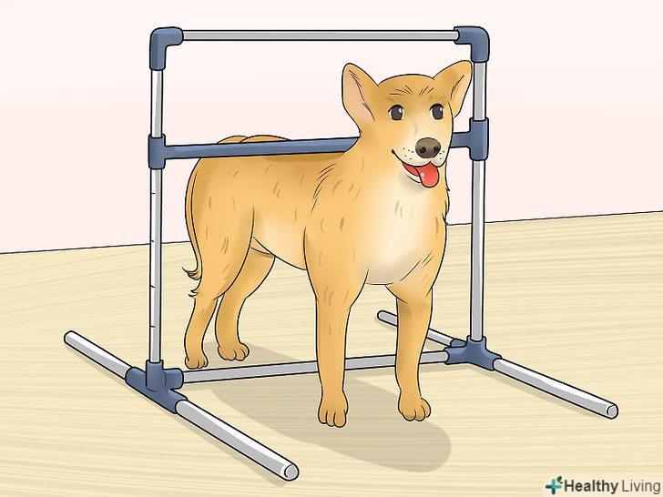 Поставте собаку біля стіни. щоб результати виміру при вимірюванні зростання собаки були точними, тварина повинна стояти. Собаку слід поставити поруч зі стіною або дверним косяком. Вертикальна точка опори буде використовуватися в процесі вимірювання росту собаки.- Переконайтеся в тому, що собака стоїть прямо. Постарайтеся забезпечити вихованцеві максимально правильну стійку, коли всі його чотири лапи твердо стоять на підлозі і рівно розставлені відносно один одного. Всі ноги повинні виявитися перпендикулярними підлозі, а самі лапи — розташуватися приблизно по ширині плечей. [1]