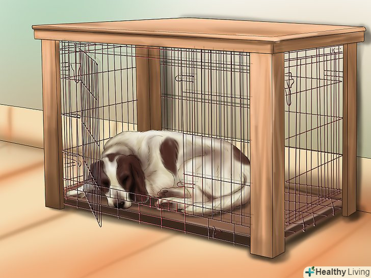 Привчіть собаку спати в коробці. Якщо ви хочете, щоб ваш пес спав в коробці, але він до цього не звик, у вас може піти чимало часу на те, щоб його привчити. [1] спостерігайте за звичками вашої собаки і будьте готові показати їй, що коробка – це гарне місце. Покладіть в коробку іграшки, щоб пробудити у цуценя інтерес до дослідження нового місця. Коли вимовляєте команди" на місце "або" в коробку", робіть це доброзичливим тоном. Так ви привчите собаку не сприймати коробку як покарання.- Якщо ви відправляєте собаку в коробку як покарання, вона не буде відчувати себе там комфортно і розслаблено.