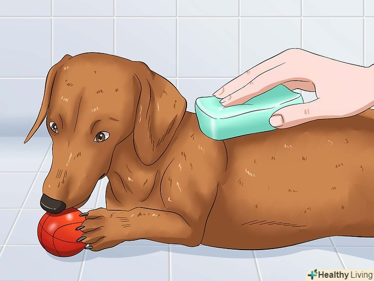 Помістіть у ванну іграшки для собаки. Якщо у вашого вихованця є улюблена іграшка, покладіть її в ванну перед ним. Собака зможе займатися соєю іграшкою, поки ви її миєте. В результаті тварина відвернеться і забуде про свої хвилювання і страхи. [11]- Іграшка посприяє також тому, що купання почне асоціюватися у собаки не зі страхом, а з веселощами та іграми. Це виявиться корисним в майбутньому, і ваш вихованець буде охочіше купатися.