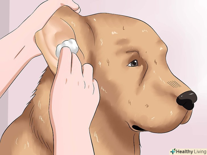 Слідкуйте, щоб вода не потрапила в вуха тварини. у собак дуже чутливі вуха, і при попаданні в них води тварина може випробувати біль і дискомфорт. Якщо вода потрапить собаці в вуха, вона напевно спробує вирватися. Щоб уникнути цього краще взагалі не лити воду на морду тварини. Замість цього витріть мокрою ганчіркою шерсть навколо очей і пащі. [13]- Деякі рекомендують затикати вуха ватяними кульками, щоб в них не потрапила вода. Однак це може ще сильніше налякати тварину. Якщо ваш вихованець нервує, краще не затикати йому вуха. Просто не лийте воду на голову собаки. Нанесіть крапельку шампуню на м'яку мочалку або губку і витріть нею морду, голову і зовнішню сторону вух. Використовуйте мокру мочалку, щоб видалити залишки шампуню і бруд. Більшості собак подобається, коли труть їх голову, вуха і морду. [14] [15]