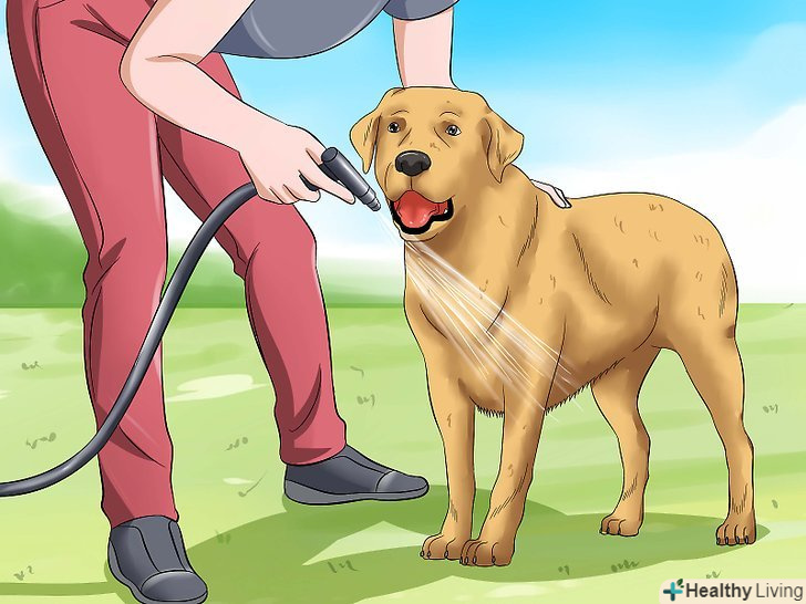 Не поспішаючи намочіть шерсть. навіть якщо вода має відповідну температуру, собака може злякатися, якщо намокне занадто швидко. Чи не занурюйте її в воду відразу, інакше вона запанікує і спробує вирватися. Замість цього спочатку злегка побризкайте водою на її груди. Якщо собака залишається спокійною, збільште кількість води і поступово намочіть все тіло. [9]