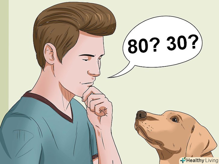 Помножте отримане число на 4 і додайте 21. ви отримали приблизну оцінку віку собаки за людськими мірками. [18]- Наприклад, якщо вашій собаці 10 років, це те ж, що 53 роки для людини.