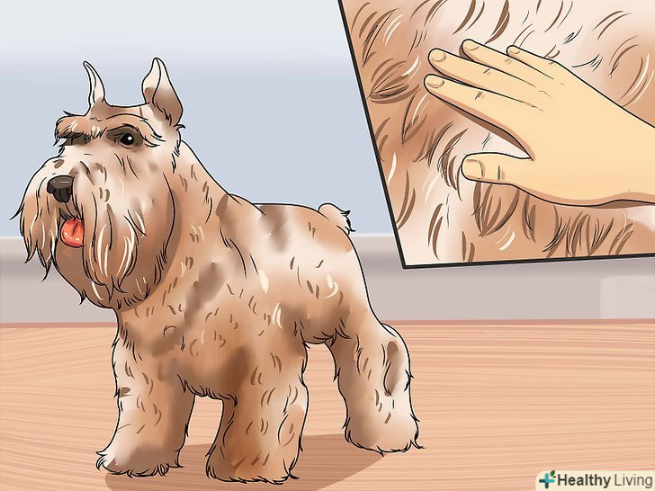 Огляньте шерсть собаки. у молодих собак шерсть зазвичай тонша і м'яка, а у літніх – більш густа і груба, іноді масляниста. У тварин старшого віку може з'являтися сивина, особливо на морді. [9]