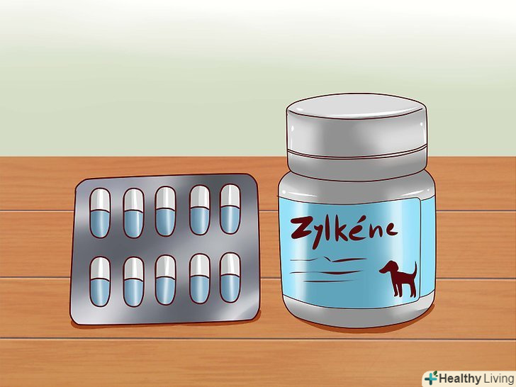 Давайте собаці антистресовий препарат «Зілкен». він містить молочні білки, що володіють заспокійливим ефектом на зразок діазепаму. Капсули слід давати два рази на день. Вони досить ефективно заспокоюють собак в грозу, при відвідуванні ветеринарної клініки або під час перебування в клітці. [12]