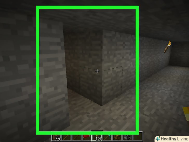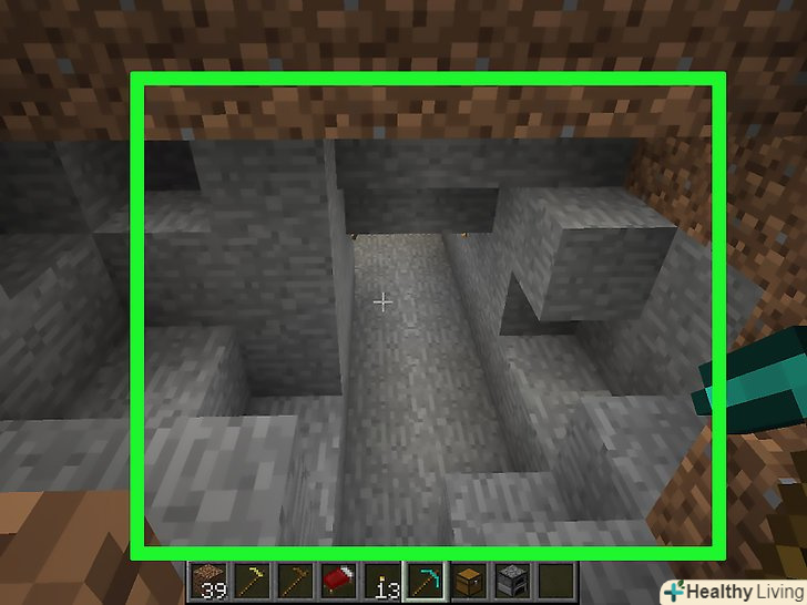 Викопайте стіну між двома вторинними тунелями. Вийде великий вторинний тунель. Коли будете копати, шукайте алмази на стелі і на підлозі.- Повторіть цей процес, поки основний тунель не буде Розширений, а потім копайте далі і повторюйте процес.