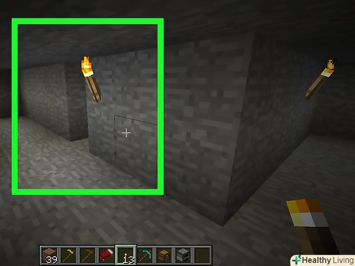 Викопайте вторинний тунель праворуч або ліворуч головного тунелю.довжина вторинного тунелю повинна бути не менше двадцяти блоків, а ширина — 1-2 блоки.- Копайте вторинний тунель в декількох блоках від кінця головного тунелю.
