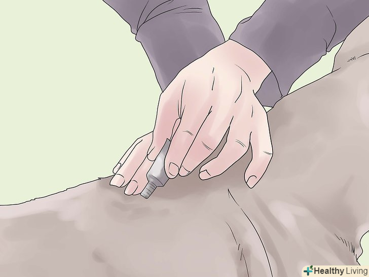 Розділіть шерсть собаки.- Знайдіть точку на середині спини між лопатками (холка собаки), розсуньте руками шерсть і оголіть шкіру.